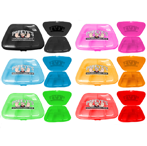 Popeye's GearALL NEW TRANSLUCENT NEONS! Pocket clam-shell daily travel pill case. Convenient and portable, take your daily vitamins on the go.
